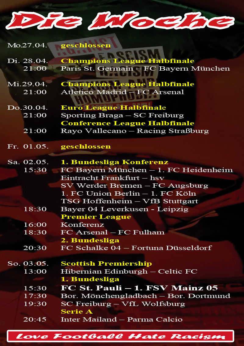 Öffnungszeiten: Mo. -Fr. ab 19:00 Uhr
