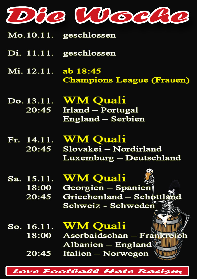 Öffnungszeiten: Mo. -Fr. ab 19:00 Uhr